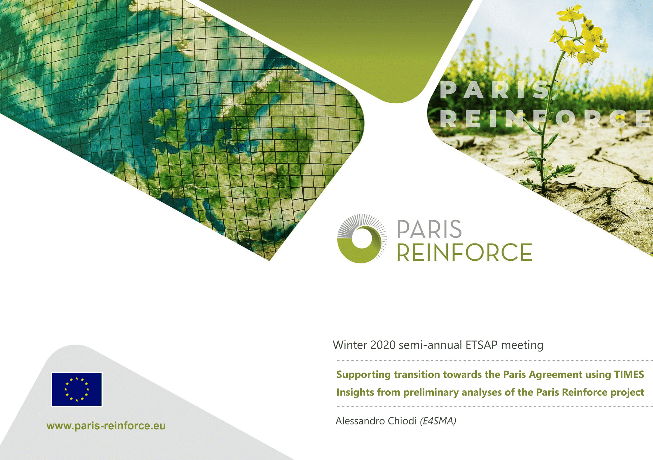 On behalf of the PARIS REINFORCE project, Alessandro Chiodi (E4SMA) participated in the workshop and presented the project progress. In particular, Dr. Chiodi provided insights from preliminary analyses of the PARIS REINFORCE project, regarding the coverage, stakeholder engagement and planning, the harmonisation of exogenous variables between models, the I2AM PARIS platform, the development of scenarios and the next steps for the project.