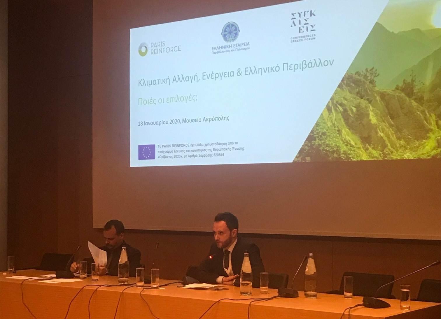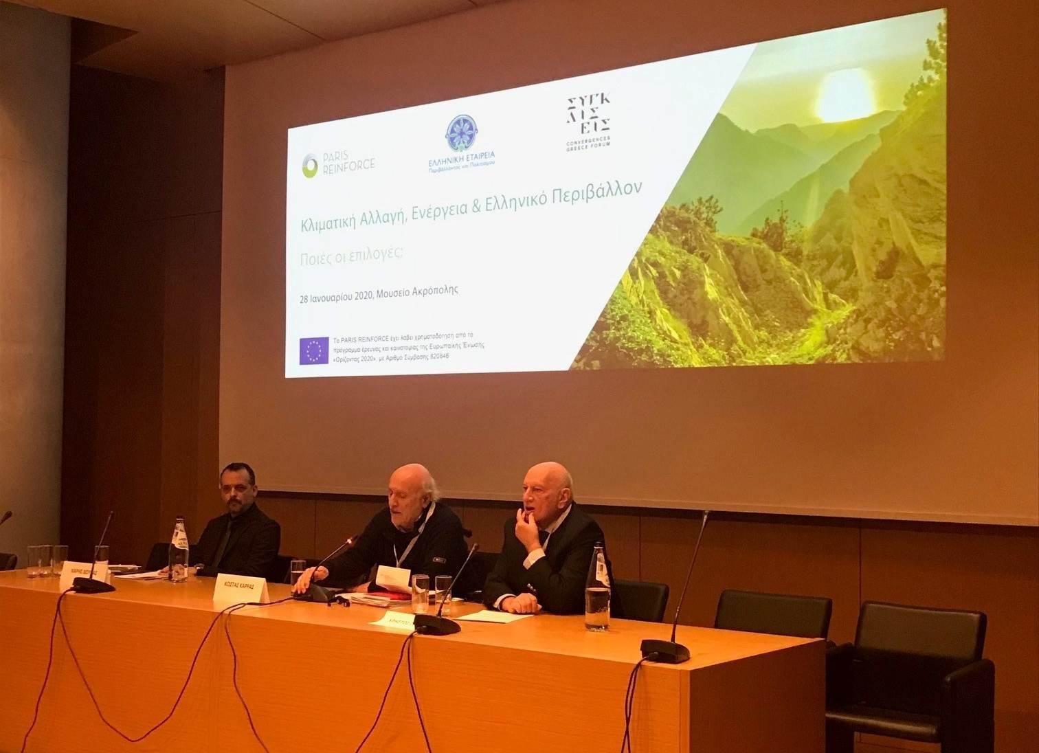 The PARIS REINFORCE project, along with the Hellenic Society for the Environment and Culture and the Convergences Greece Forum, co-organised a national stakeholder workshop on climate change, energy and the national context, aiming to explore the available alternatives, on Tuesday, January 28, 2020, while giving the opportunity to stakeholders from industry, government and the civil society to get informed, discuss, raise concerns and help decide the way forward.